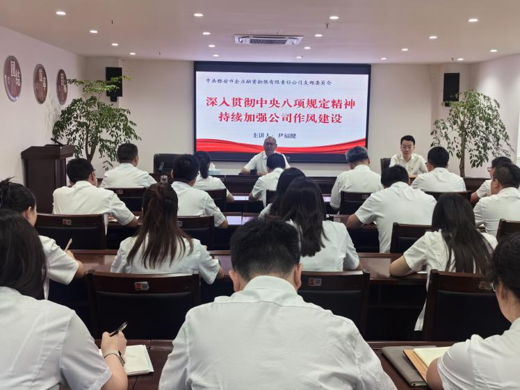 二是黨支部書(shū)記講專(zhuān)題黨課。市擔(dān)保公司黨支部書(shū)記、董事長(zhǎng)尹福健以“深入貫徹中央八項(xiàng)規(guī)定精神,持續(xù)加強(qiáng)公司作風(fēng)建設(shè)”為題,為全體黨員、入黨積極分子講授了一堂生動(dòng)的專(zhuān)題黨課。黨課圍繞充分認(rèn)識(shí)開(kāi)展學(xué)習(xí)教育的重大意義、深刻把握中央八項(xiàng)規(guī)定精神的豐富內(nèi)涵和實(shí)踐要求、充分認(rèn)識(shí)違反中央八項(xiàng)規(guī)定精神的嚴(yán)重性和危害性以及準(zhǔn)確把握黨的作風(fēng)建設(shè)的重點(diǎn)任務(wù),自覺(jué)強(qiáng)黨性正作風(fēng)守紀(jì)律等4個(gè)方面展開(kāi),為進(jìn)一步加強(qiáng)作風(fēng)建設(shè)指明了方向、提供了遵循。